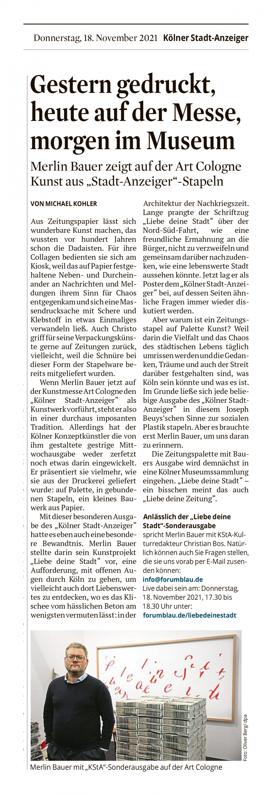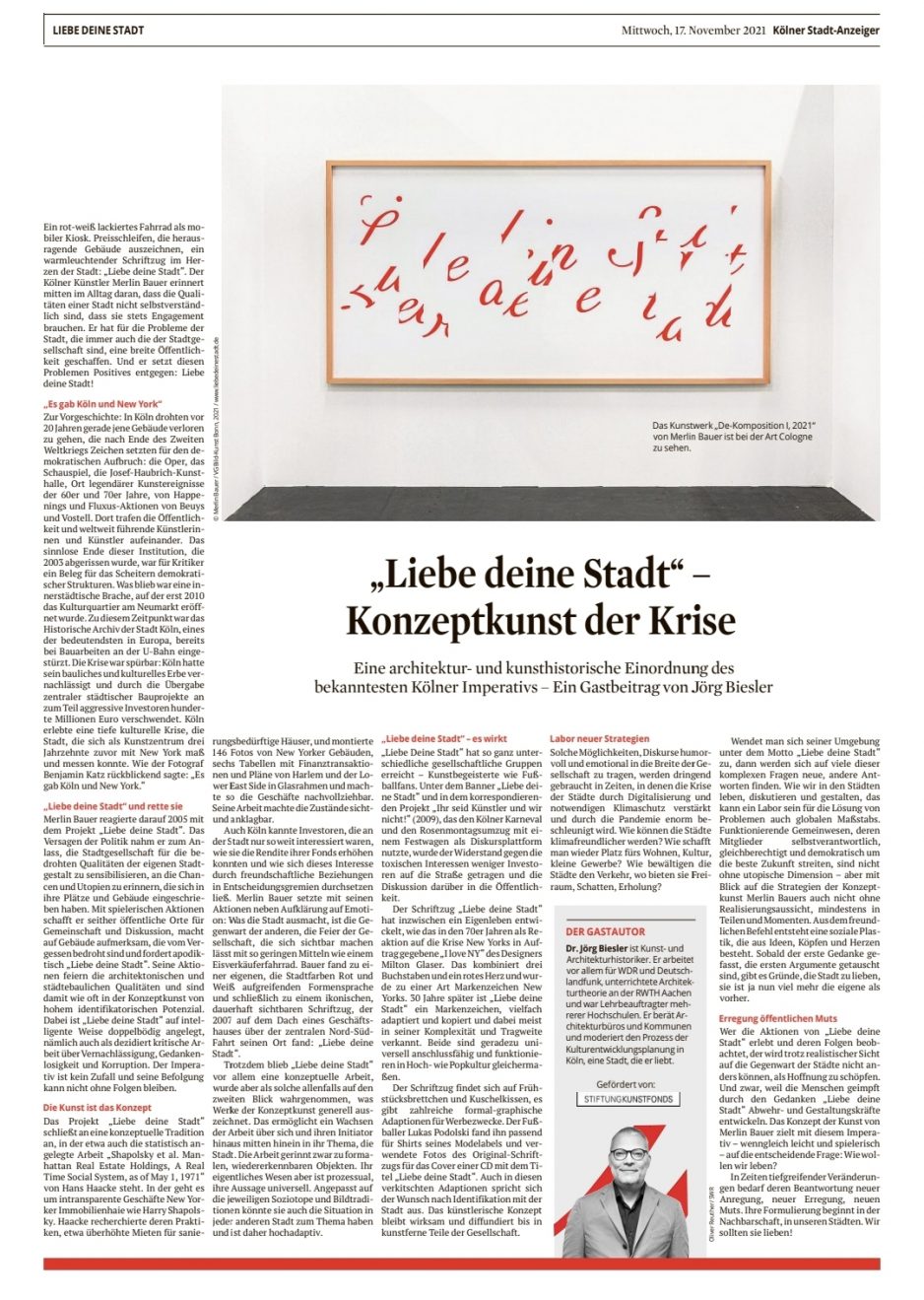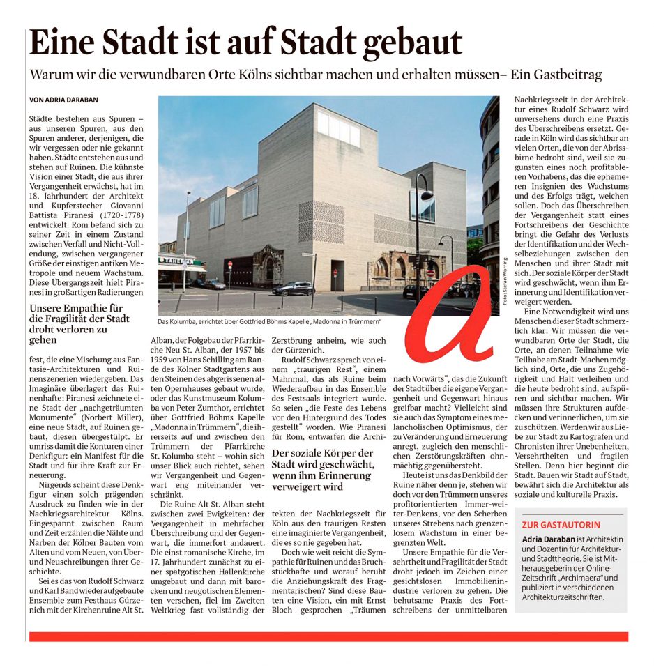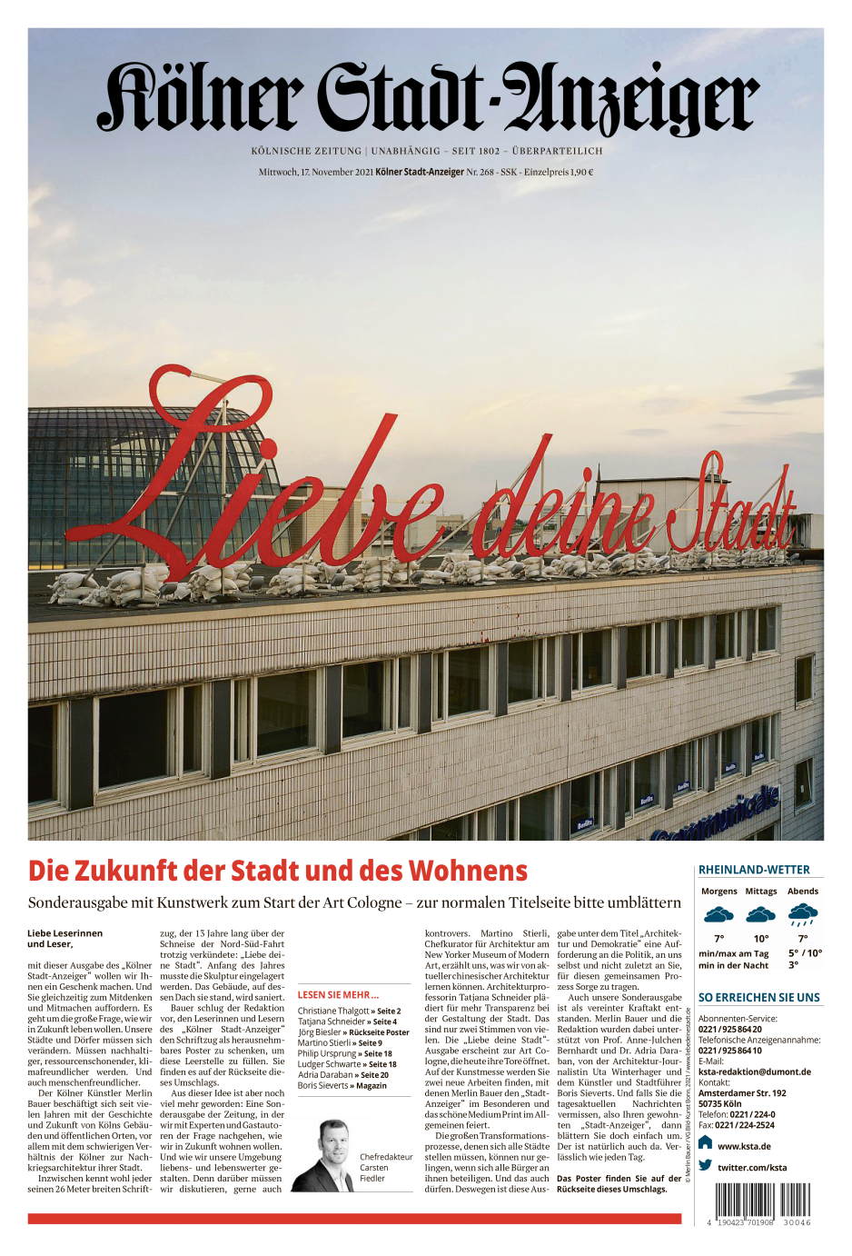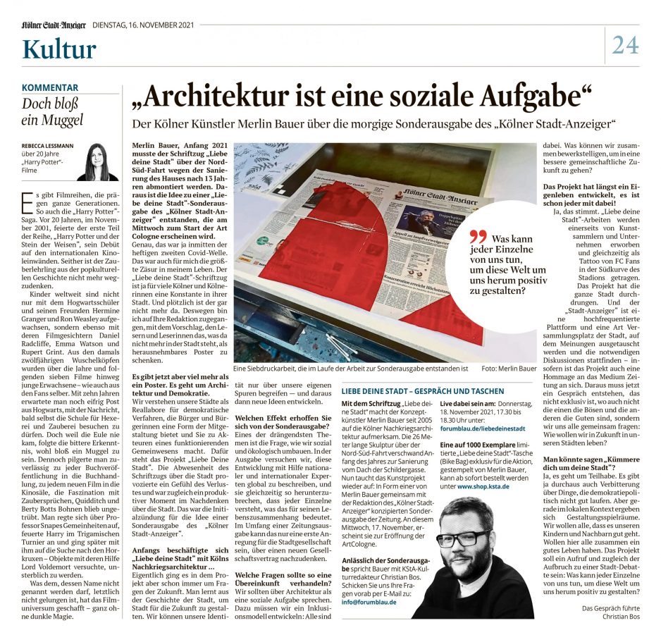 „LIEBE DEINE STADT – ARCHITEKTUR & DEMOKRATIE“ // Die Kunst-Sonderausgabe des Kölner Stadt-Anzeiger erscheint am Mittwoch, 17. November 2021