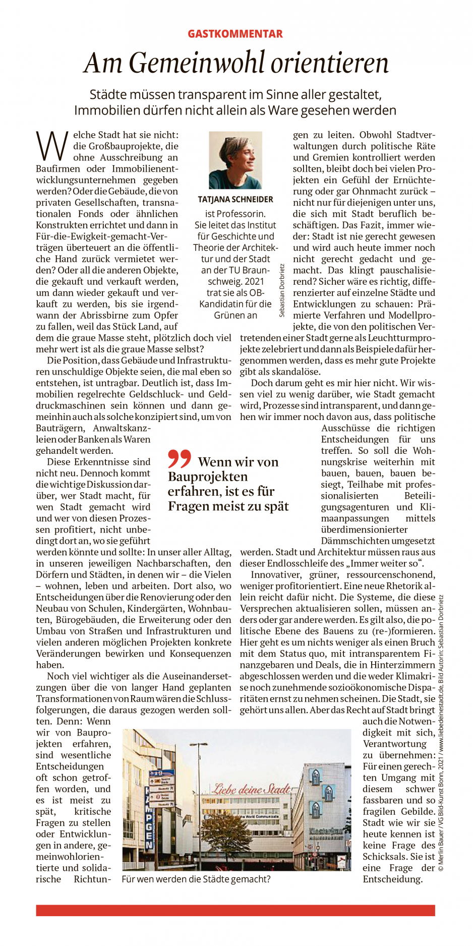 AM GEMEINWOHL ORIENTIEREN – Der Gast-Kommentar von Prof. Dr. Tatjana Schneider (TU Braunschweig)