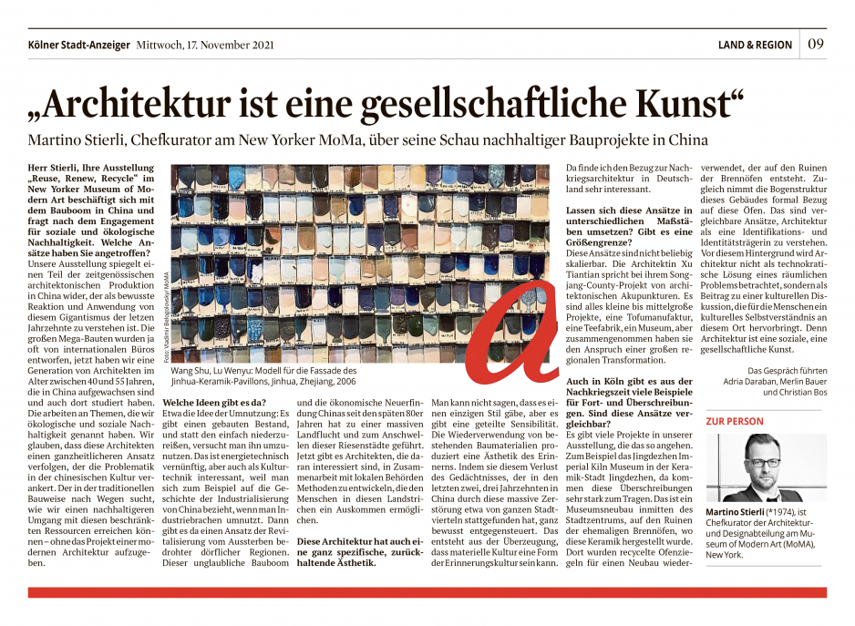 Der Chefkurator für Architektur und Design des MoMA in der Kunst-Sonderausgabe „Liebe deine Stadt – Architektur & Demokratie“ über seine Schau nachhaltiger Bauprojekte in China.